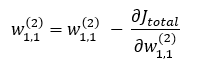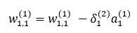 최종적으로 w1,1(1)의 업데이트 식은 아래와 같게 됩니다.