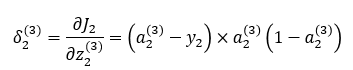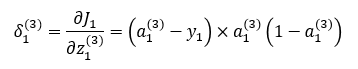 역전파의 출발노드인 a1(3)에서 Jtotal의 값은 J1입니다. 따라서 위 식 오른쪽 항은 아래와 같이 계산됩니다.