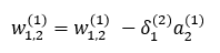 동일하게 w1,2(1)의 업데이트 식은 아래와 같습니다.